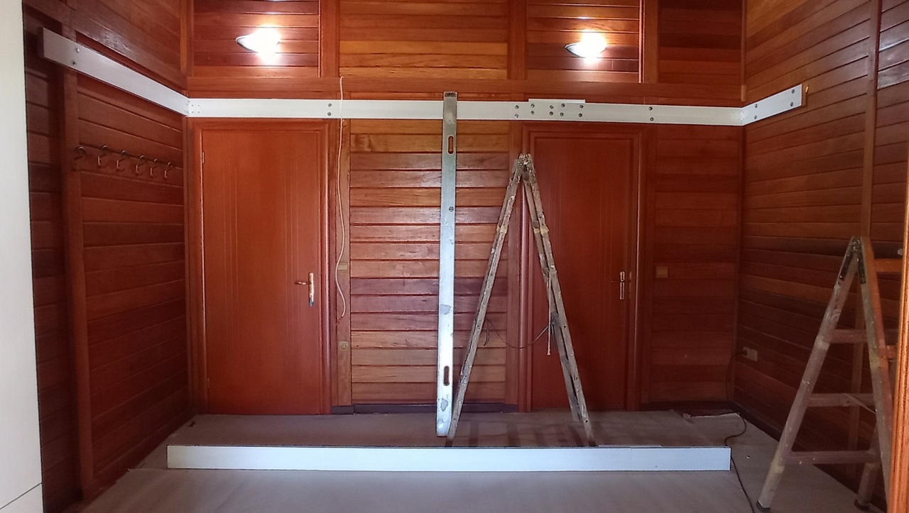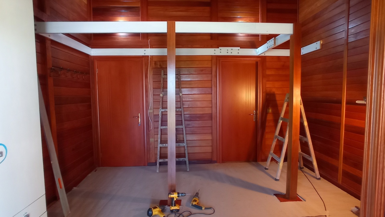 Έτσι, χωροθετήθηκαν 2 διαφορετικά επίπεδα, ένα για κάθε χρήση. Κατ’ αυτόν τον τρόπο λύθηκαν τα προβλήματα της υφιστάμενης διέλευσης, μέσω του κατωτέρου επιπέδου του δωματίου.